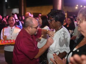 Se refirió también a los hijos, testigos del sacrificio compartido: “que toda su vida nos han visto estudiar para dar una clase digna y tantas veces nos han escuchado aquello de ‘hasta que no termine no me acuesto’. Y cuántas veces se despiertan en la mañana y todavía nos encuentran revisando tesis o tecleando en la computadora algún artículo o algún informe”.
